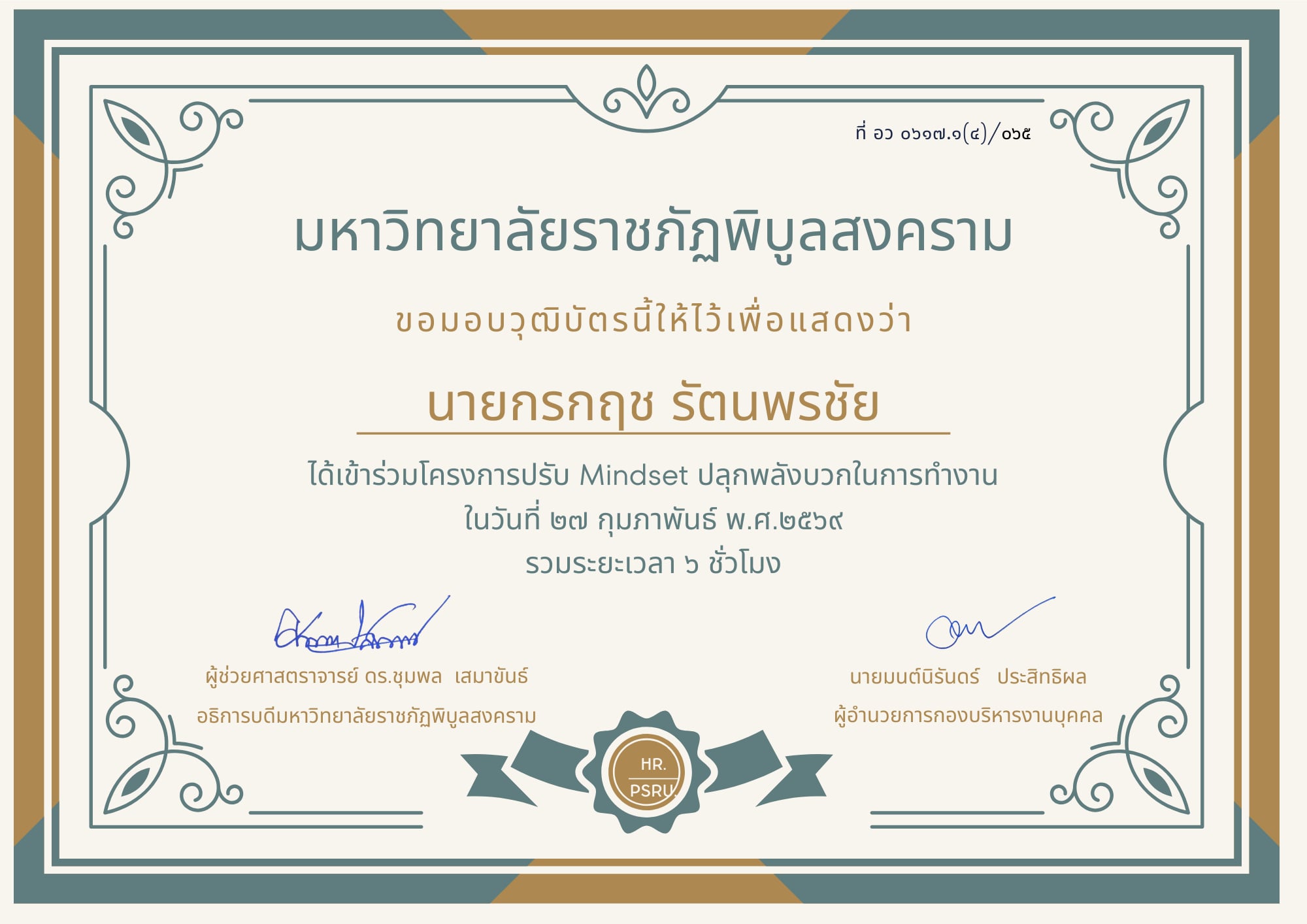 อบรมโครงการปรับ MINDSET ปลุกพลังบวกในการทำงาน จัดโดย กบค. มรพส.
