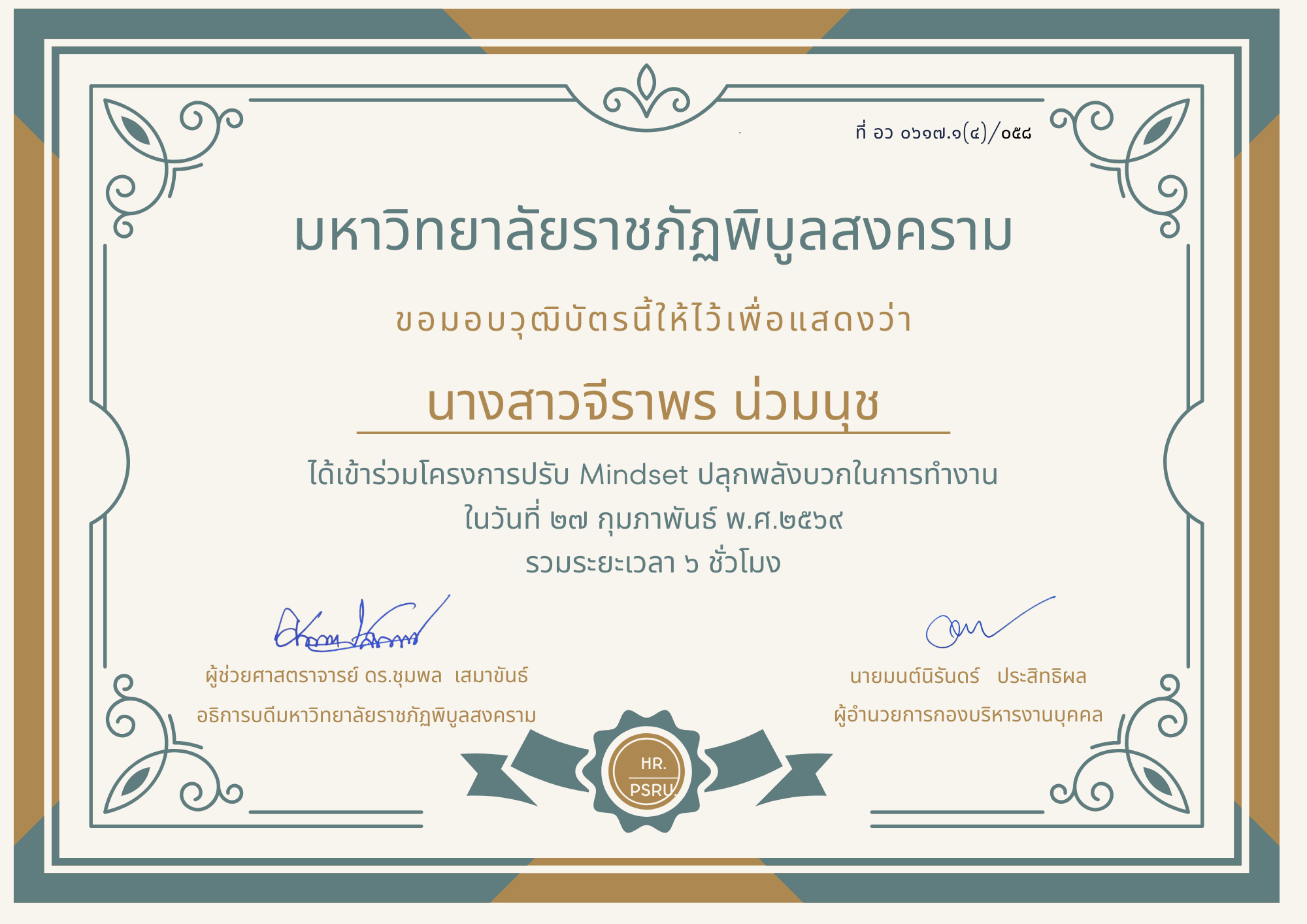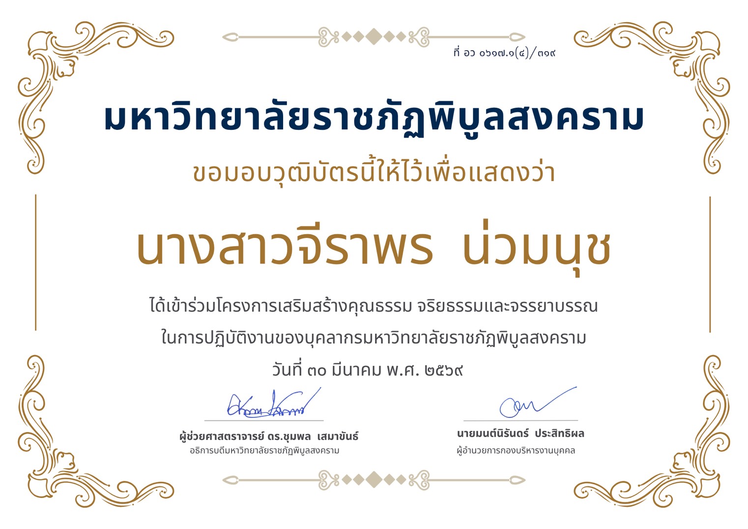 โครงการเสริมสร้างคุณธรรม จริยธรรม และจรรยาบรรณในการปฏิบัติงานของบุคลากรฯ มหาวิทยาลัยราภชัฏพิบูลสงคราม